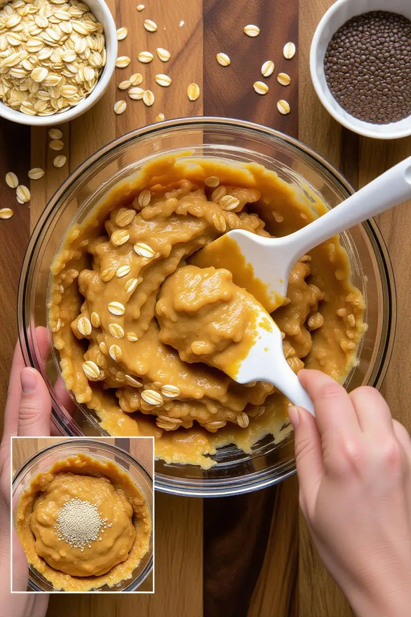 - Add the rolled oats and ground flaxseed to the wet mixture. Using a folding motion, incorporate the dry ingredients until no loose oats remain visible (about 2-3 minutes of mixing). The dough should be thick, slightly sticky, but hold together when pressed—similar to cookie dough consistency.Texture Checkpoint: Press a small amount between your fingers. It should compress into a cohesive ball without crumbling or leaving excessive residue on your hands. If too dry, add 1 tablespoon honey; if too wet, add 2 tablespoons oats.