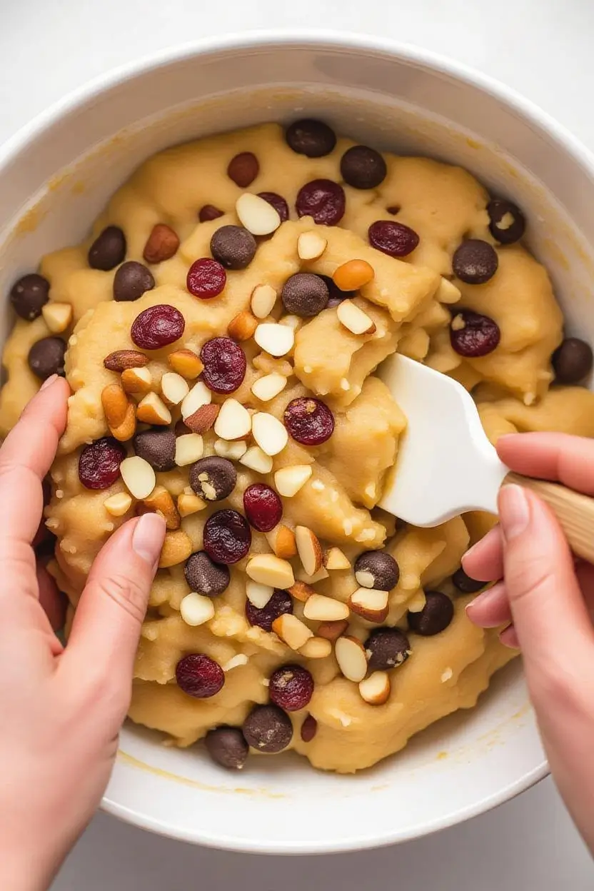 - Fold in your chosen mix-ins (chocolate chips, dried fruit, nuts, or coconut) until evenly distributed throughout the dough. Avoid overmixing at this stage to prevent breaking down the add-ins.Pro Tip: For chocolate chip energy balls, reserve 2 tablespoons chips to press into the tops of finished balls for visual appeal.